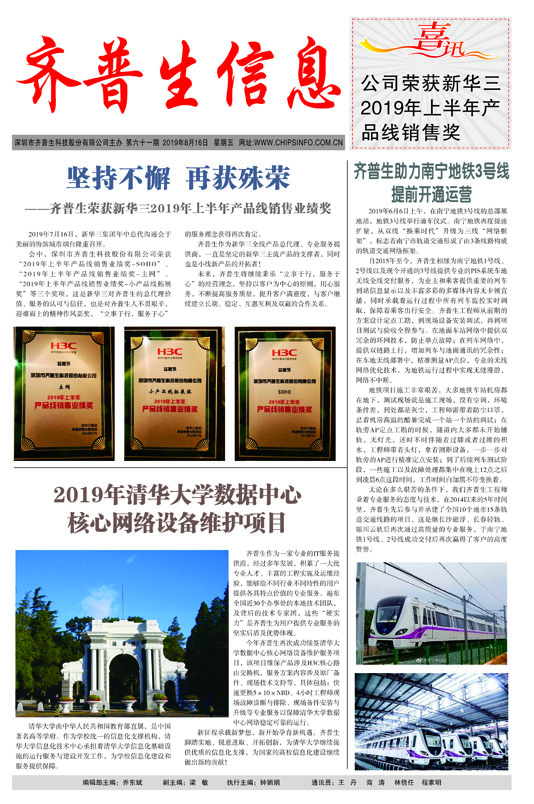 堅持不懈 再獲殊榮 ------齊普生榮獲新華三2019年上半年產(chǎn)品線銷售業(yè)績獎