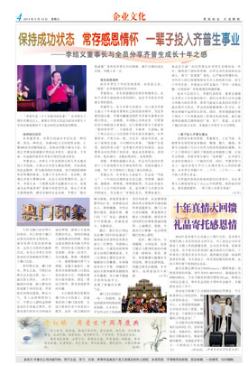 保持成功狀態(tài) 常存感恩情懷 一輩子投入齊普生事業(yè) ——李結(jié)義董事長與全員分享齊普生成長十年之感